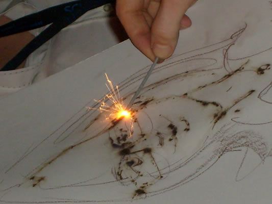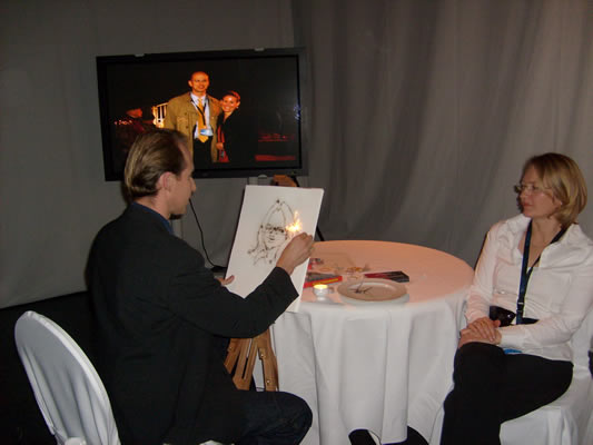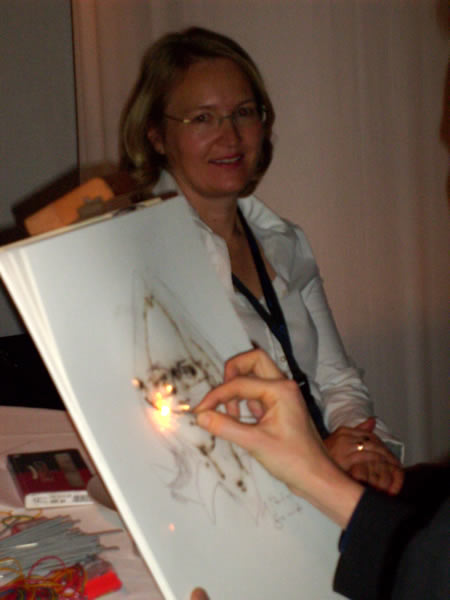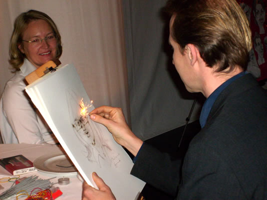 pyrography ist die Kunst des Schnellzeichnens mit Wunderkerzen. Karikaturist Alex bietet ein noch nicht da gewesenes, eindrucksvolles Medienspektakel. Zu einer Abendveranstaltung, bei Galaveranstaltungen oder zu Silvester, ist diese Methode effektvoll einsetzbar. Kunst als Happening, das Spaß macht.